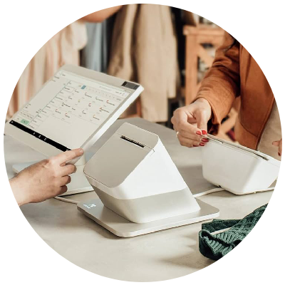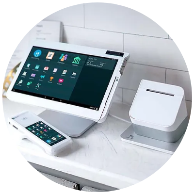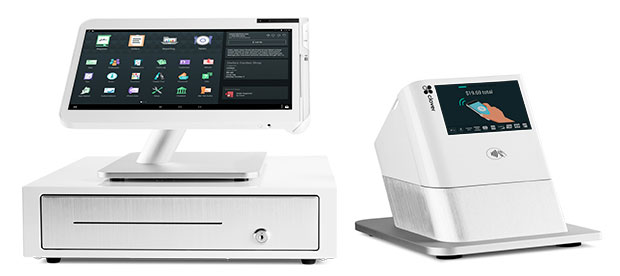 - Card insert + swipe payment options are integrated into the screen Includes a printer for receipts